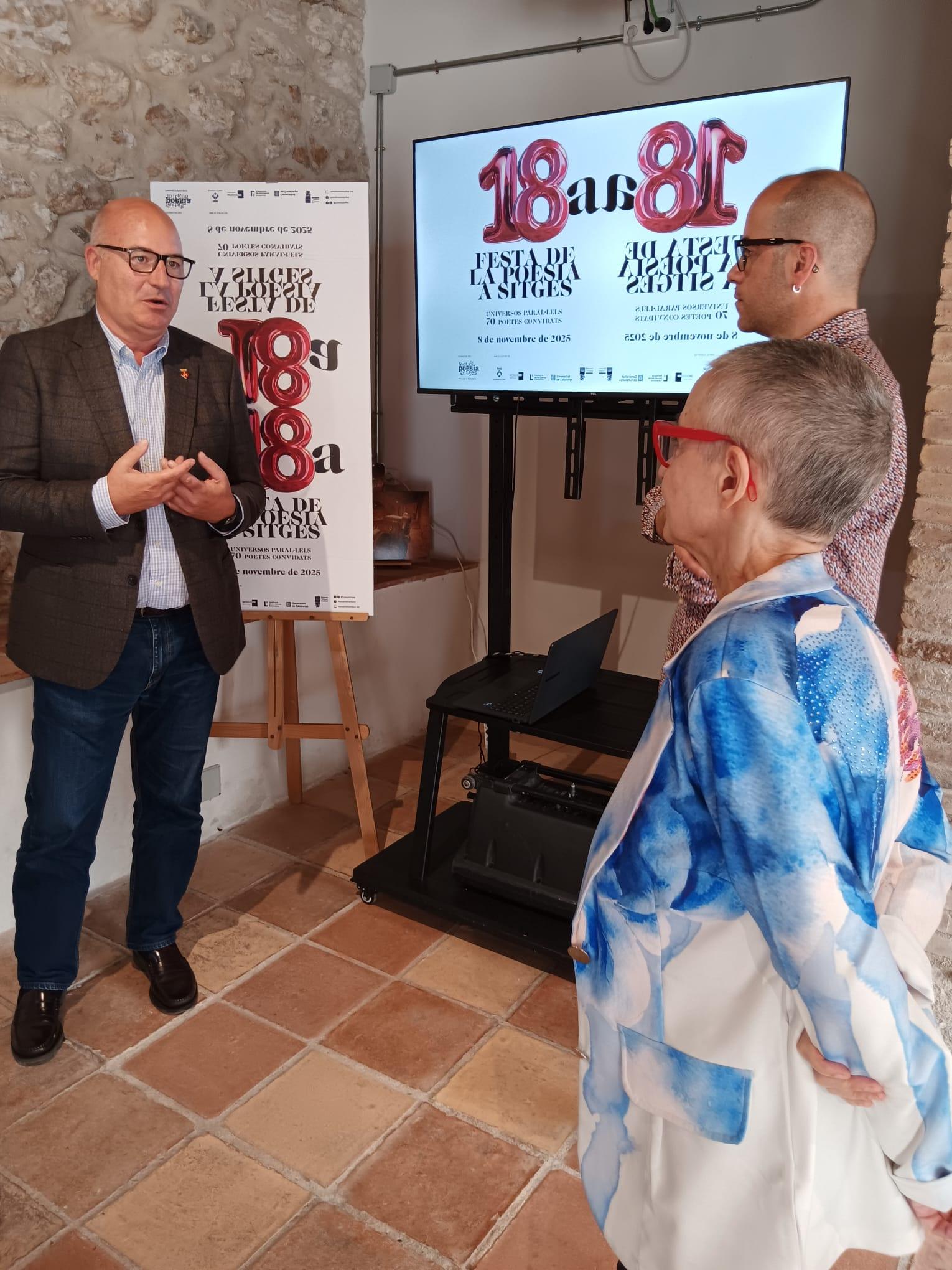 El Centro de Interpretación de la Malvasía acoge la presentación de la 18ª edición de la Fiesta de la Poesía en Sitges, un evento que este año alcanza su mayoría de edad con un formato extraordinario y el reencuentro de más de setenta poetas que han sido homenajeados a lo largo de las diecisiete ediciones anteriores.