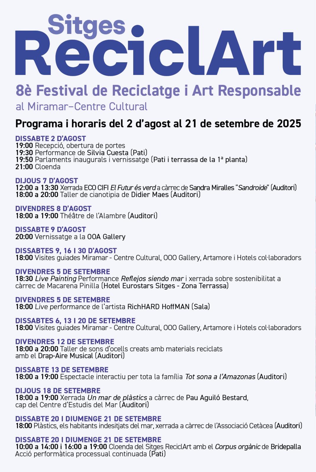 Sitges ReciclArt 2025 – Programme d’activités parallèles au Miramar-Centre Cultural